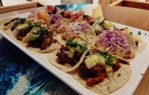 Choose 3 Tacos: Fish Tempura, Shrimp Tempura, Birria, Short Rib, Pastor Chicken, Flank Steak, or Golden Potato Tinga