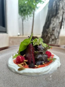 Roasted Beetroot Salad with Jococque and Pistachio Crumble